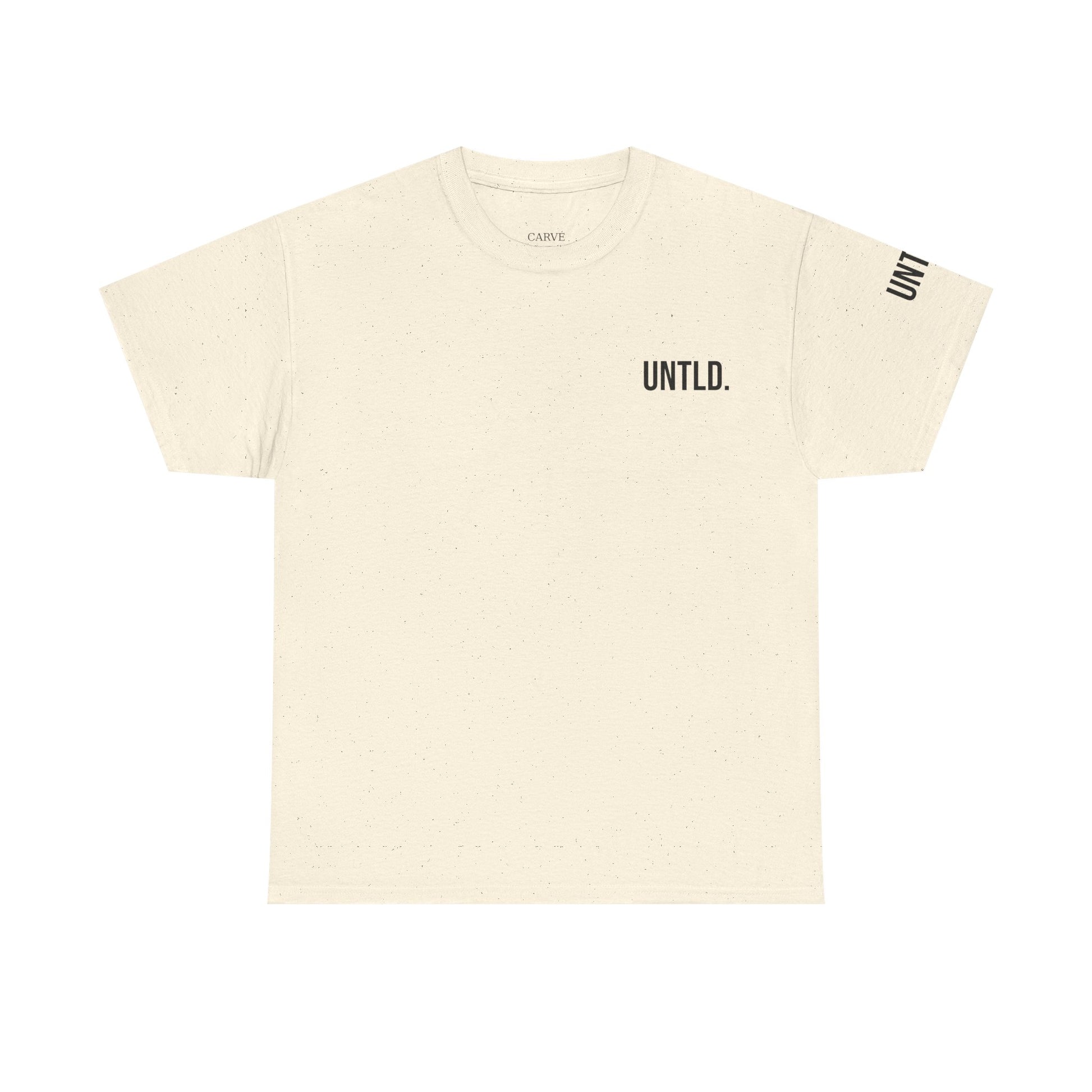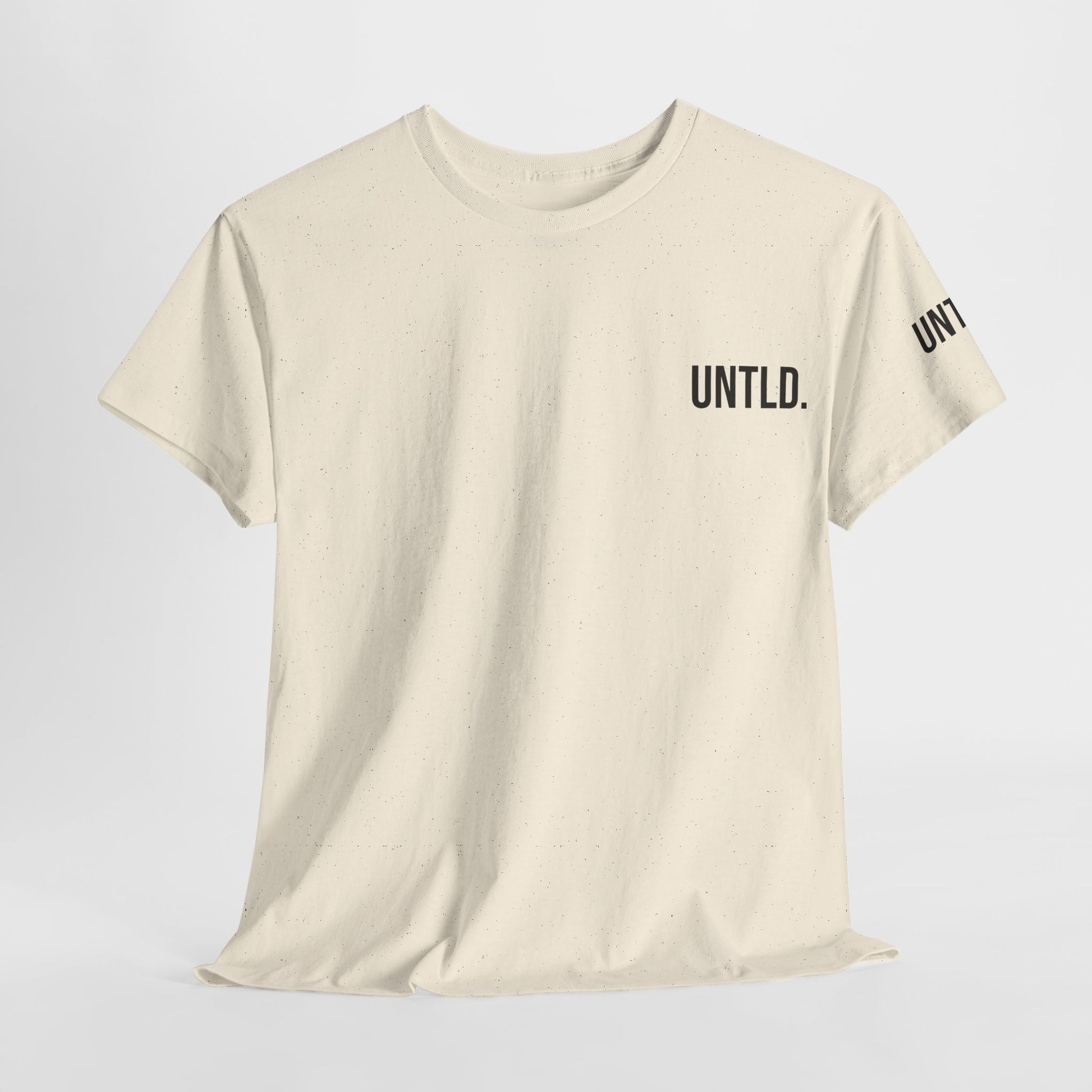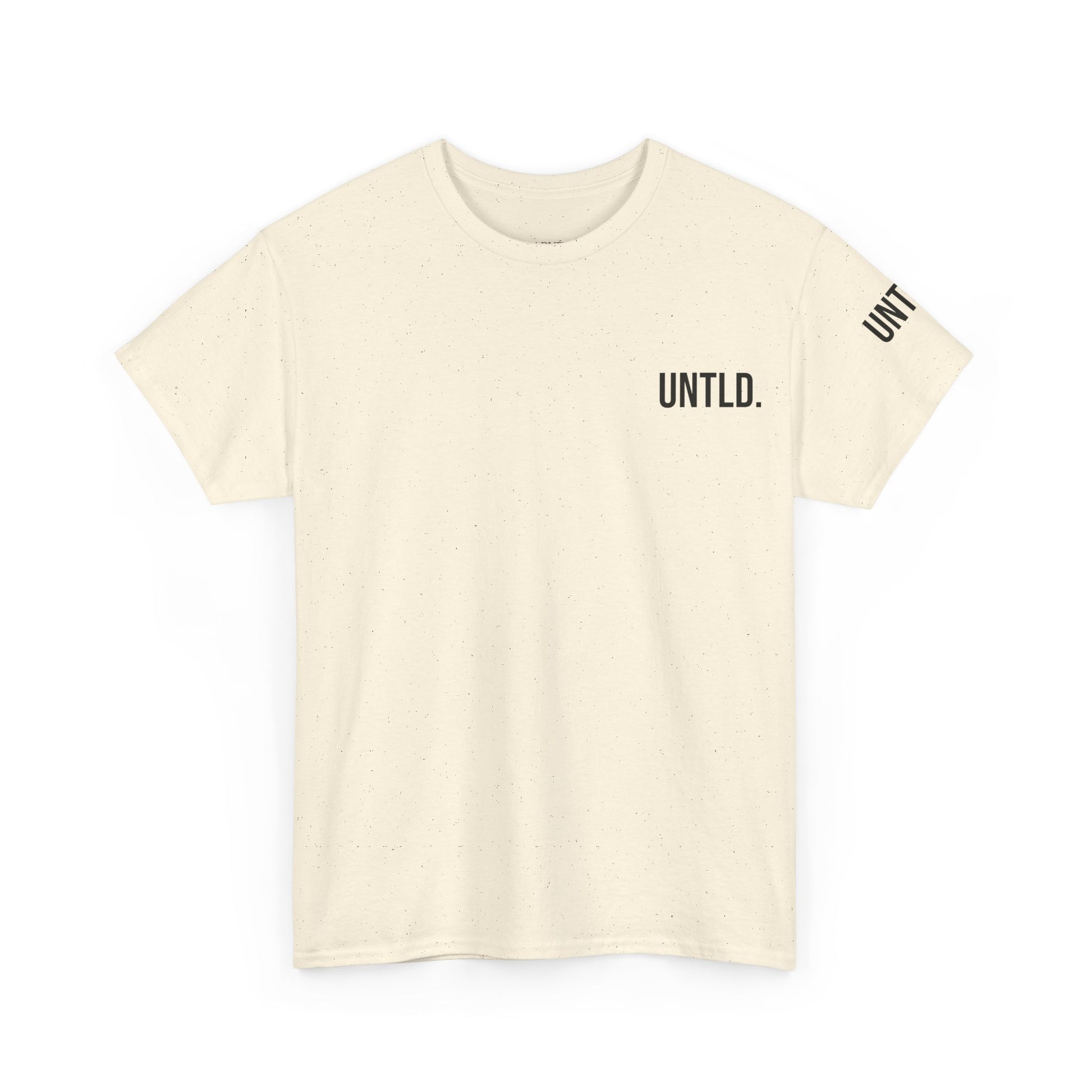 The UNTLD. Essential Natural Tee is a clean and subtle staple made from 100% preshrunk cotton. Its slightly off-white hue pairs with everything, with a black chest and sleeve logo for minimalist contrast.